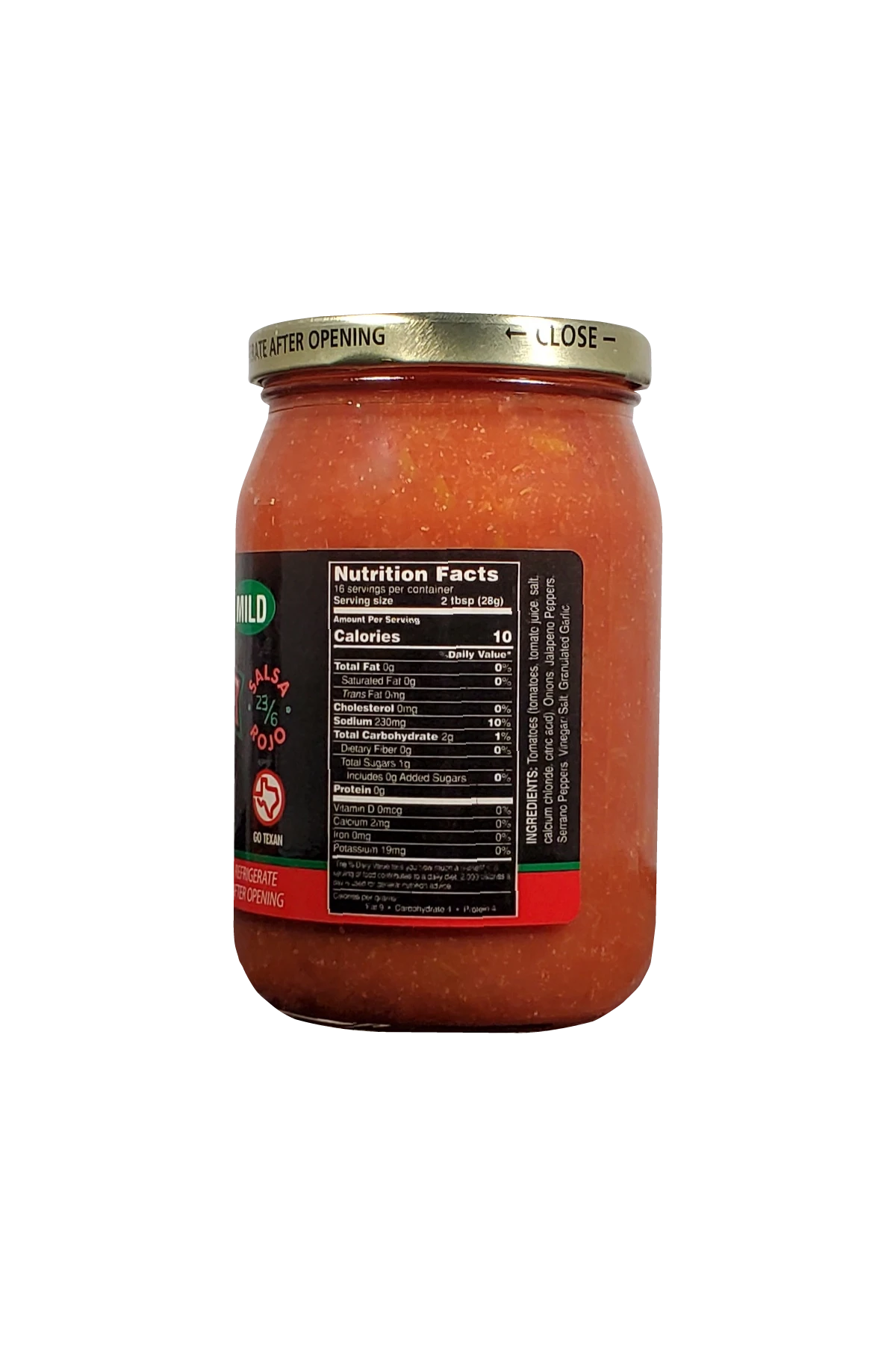 A savory salsa with fresh serranos and fresh jalapenos. Mild heat. 16oz