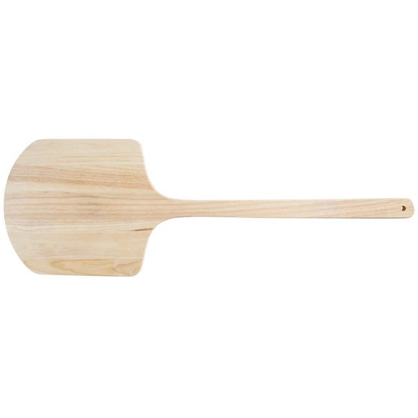 Ensure fast, effective service at your bustling pizzeria with this 12′ x 14″ wooden pizza peel! This 1/2″ thick pine pizza peel features a tapered design for easy handling. A 22″ handle ensures a safe, sturdy grasp in and out of deep ovens, while the 12″ x 14″ blade makes this pizza peel perfect for handling small pizzas. Wooden peels, like this, are vastly superior to steel peels in that they easily slide under a pizza without causing damage to the pie itself. Additionally, your customers will love the rustic charm of the wooden peel as you slide their favorite items in and out of your pizza oven atop it!