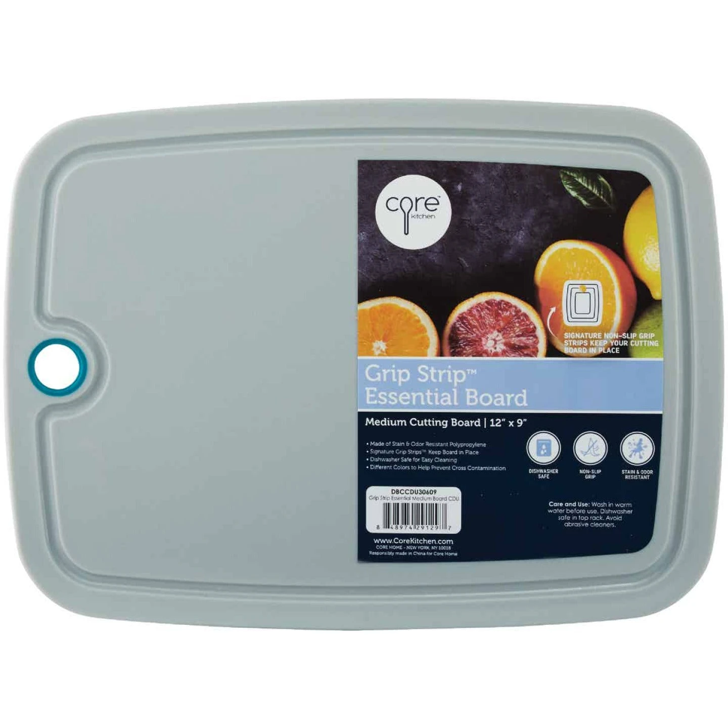 Bottom grip allows board to stay in place while cutting and chopping. Features hanging hole for easy storage.