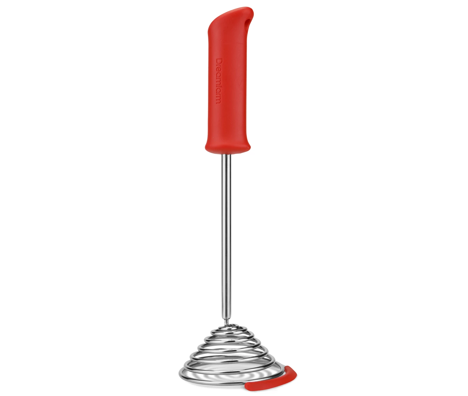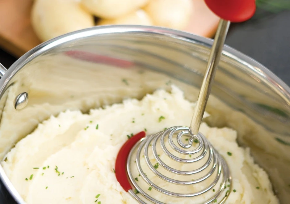 Smood is not a strange-looking whisk, it’s the world’s best potato masher. It makes smooth mash in seconds, scrapes the pot clean and serves. As you push down, Smood’s spring flattens which forces your potato through the thin gap in its coils, creating smooth fluffy mash in just one press. Holla!
