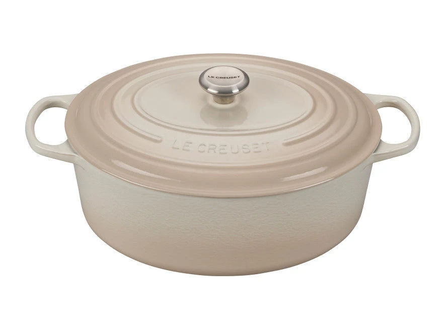 The iconic Le Creuset oval Dutch oven is indispensable in the kitchens of home cooks and professional chefs alike. Long recognized for its strength and durability, cast iron is the prime material for slow-cooking, braising and roasting, thanks to its ability to maintain even and consistent heat. The enameled oval Dutch oven needs no seasoning, and it’s suitable for both stovetop and oven use. The oval shape is particularly suited to longer cuts of meat or poultry.