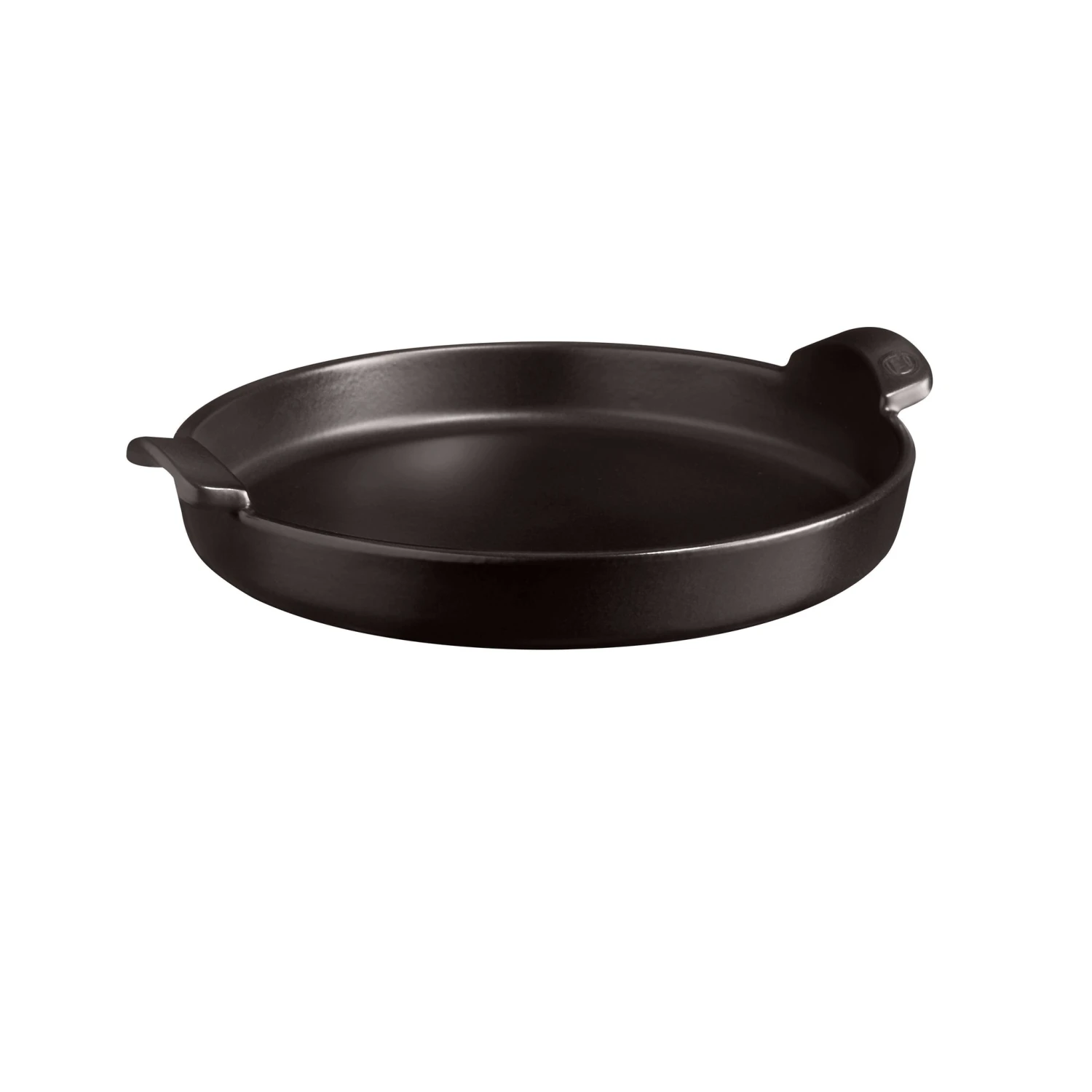 This deep pizza stone is a unique cooking dish made from refractory ceramic which holds the heat longer and allows you to make delicious deep-dish pizzas with a golden, crispy crust. Your pizza will be perfectly cooked, just like in a traditional pizza oven. The handles make the deep-dish pizza stone easy to remove from the oven or BBQ and serve directly on the table. Scratch resistant, you can cut directly on the stone without damaging the surface. Glazed surface is easy to clean, dishwasher safe. The pizza stone can be used in the oven for baking pizzas, gratins, baked pasta dishes, fruit crumbles and cobblers, and more!