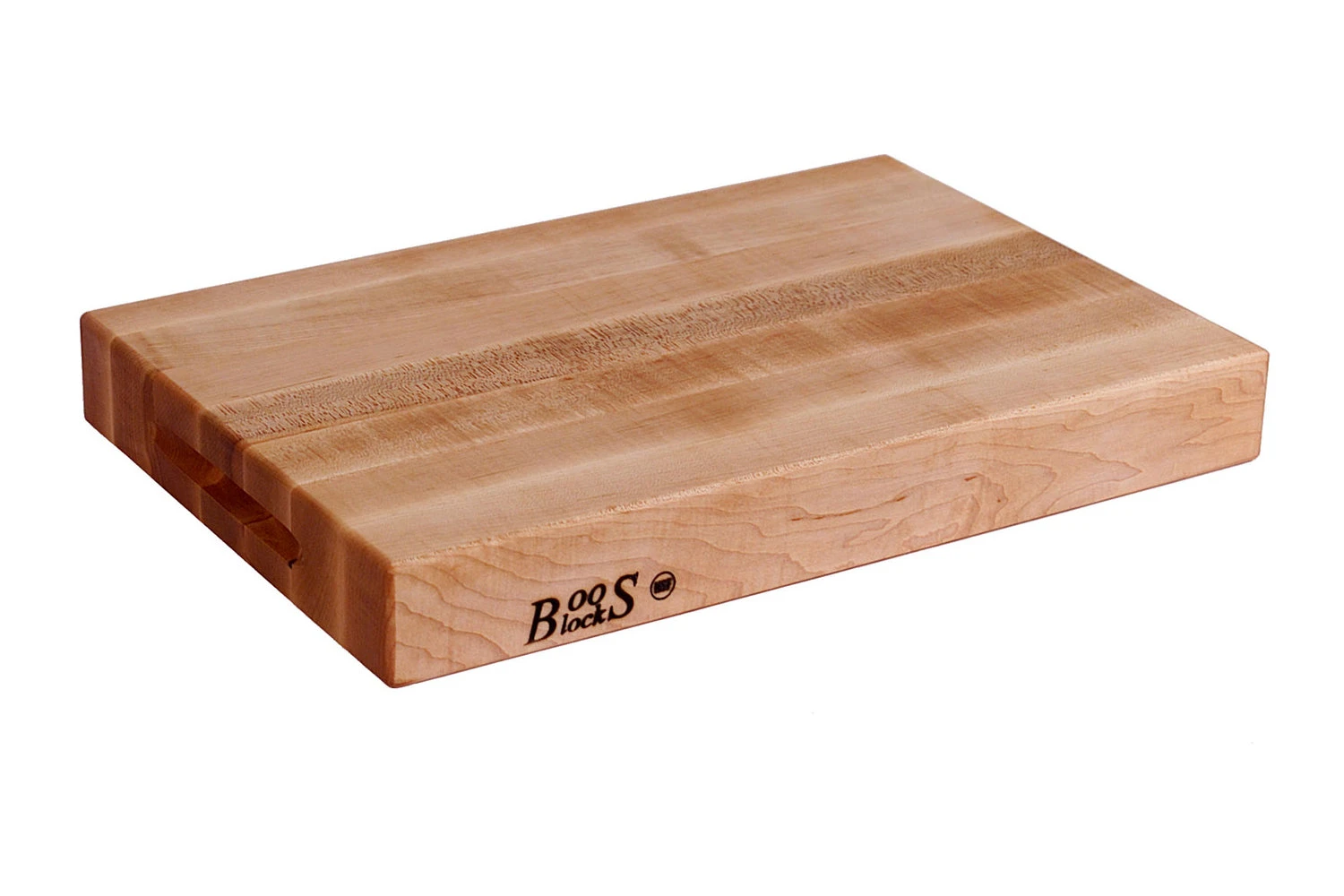 For over 100 years, John Boos has built a reputation on crafting fine cutting boards. This 24 x 18 x 2.25″ inch reversible maple cutting board showcases the John Boo’s history with a simple and classic appeal. Chop, slice, dice or simply plate to your delight on this elegant edge grain board constructed from natively grown Northern Hard Rock Maple. A durable hardwood that is resistant to water and stains, maple fits both in classic and modern kitchens alike.