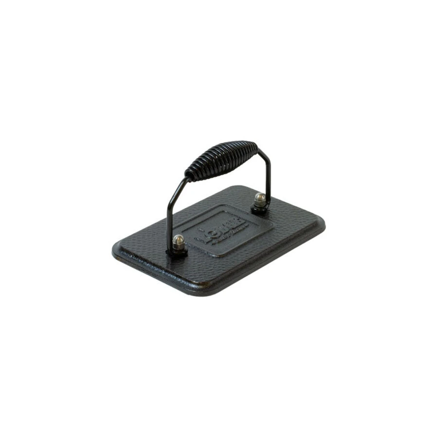 On the stovetop or grill, this grill press is perfect for eliminating curl from bacon or ham, pressing unwanted fats from your burgers or sausages, and holding heat in your grilled sandwiches. The heavy-duty cast iron base has a unique hammered finish and features a safe cool-grip spiral handle. Seasoned and ready to use.