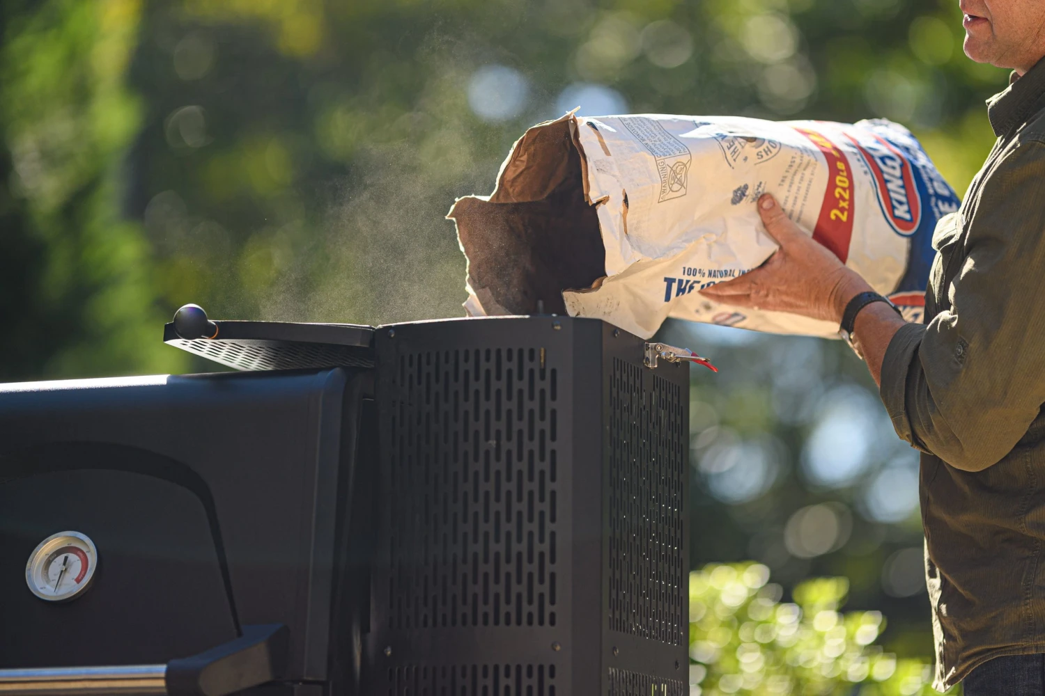 - GravityFed™ Charcoal Hopper holds 12+ hours of fuel