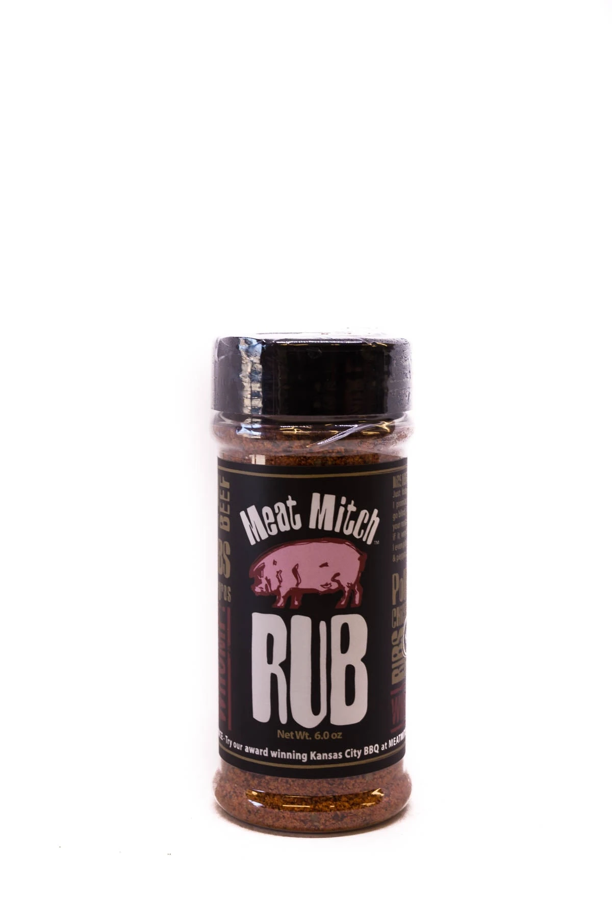 Meat Mitch Rub An unbelievable blend of spices that have been married together to accentuate the taste of anything from hog jowl to the money muscle. We built Meat Mitch Rub for war and we ain’t takin’ any prisoners…it has the perfect amount sweet, a dabble of heat, but doesn’t lose that little hint of salt that throws you over the edge.