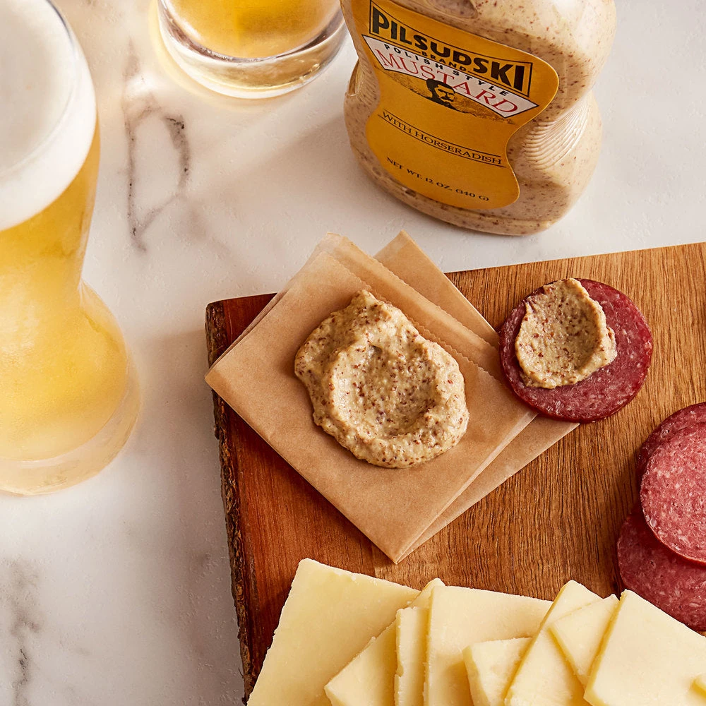 Take your mouthwatering burgers and sandwiches to a whole new level with the help of Pilsudski’s polish style horseradish squeeze mustard! This gourmet mustard blends premium mustard seed with fresh ground hot horseradish to give an extra bite, known as the “Pilsudski Punch”, and texture to a classic condiment. Drizzle atop your hot dogs, bratwurst, and sausages, use to add refreshing heat to your deli sandwiches, or serve as a dipping mustard alongside your pretzels. You can even use this mustard to create a signature marinade, perfect for coating chicken breast, salmon, or swordfish steaks.
