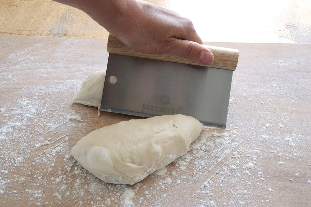 Cut, portion and scrape dough from your work surface with this Pizzacraft dough scraper. The stainless steel blade easily cuts through sticky, elastic dough, allowing you to quickly portion your dough. Scraping the blade gently across your work surface picks up any stuck dough, making cleanup faster and easier.
