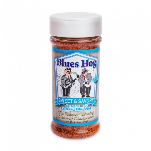 Blues Hog Sweet & Savory Seasoning is a blend of everything you’ve been looking for. Sweet & Savory offers a sweet flavor profile with a light smoky taste followed by a kick of heat.