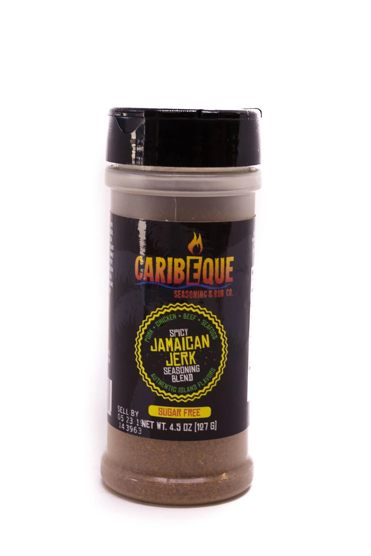Caribeque Spicy Jamaican Jerk seasoning blend has the unique flavors of Allspice, Scotch Bonnet peppers, and other Caribbeanspices. Use thisseasoning to make traditional jerk chicken or try it onpork, beef, seafood, or evenveggies and fries.