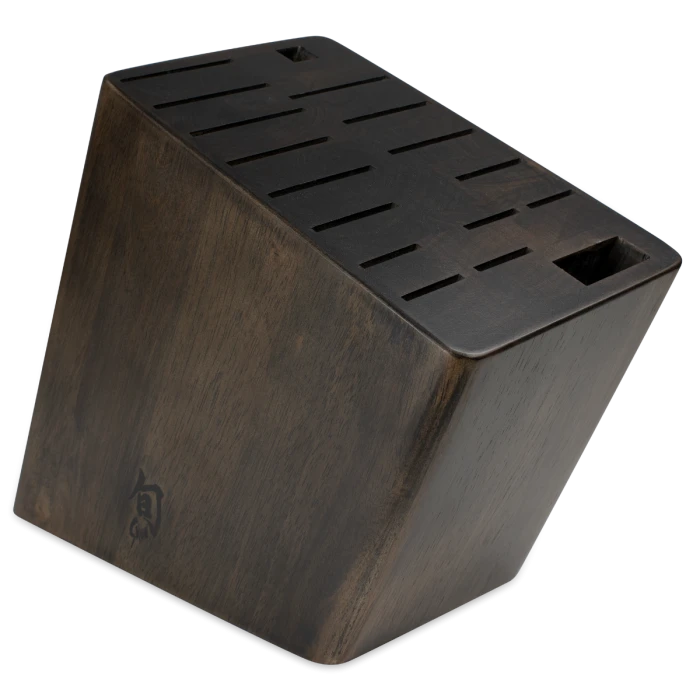 The Kanso 17-slot block offers room for your expanding Kanso collection. This solid wood block is finished to match Kanso’s tagayasan handle and works beautifully with other Shun styles as well. This handsome block features 17 slots, including one to accommodate a honing steel and one for a handy pair of kitchen shears.