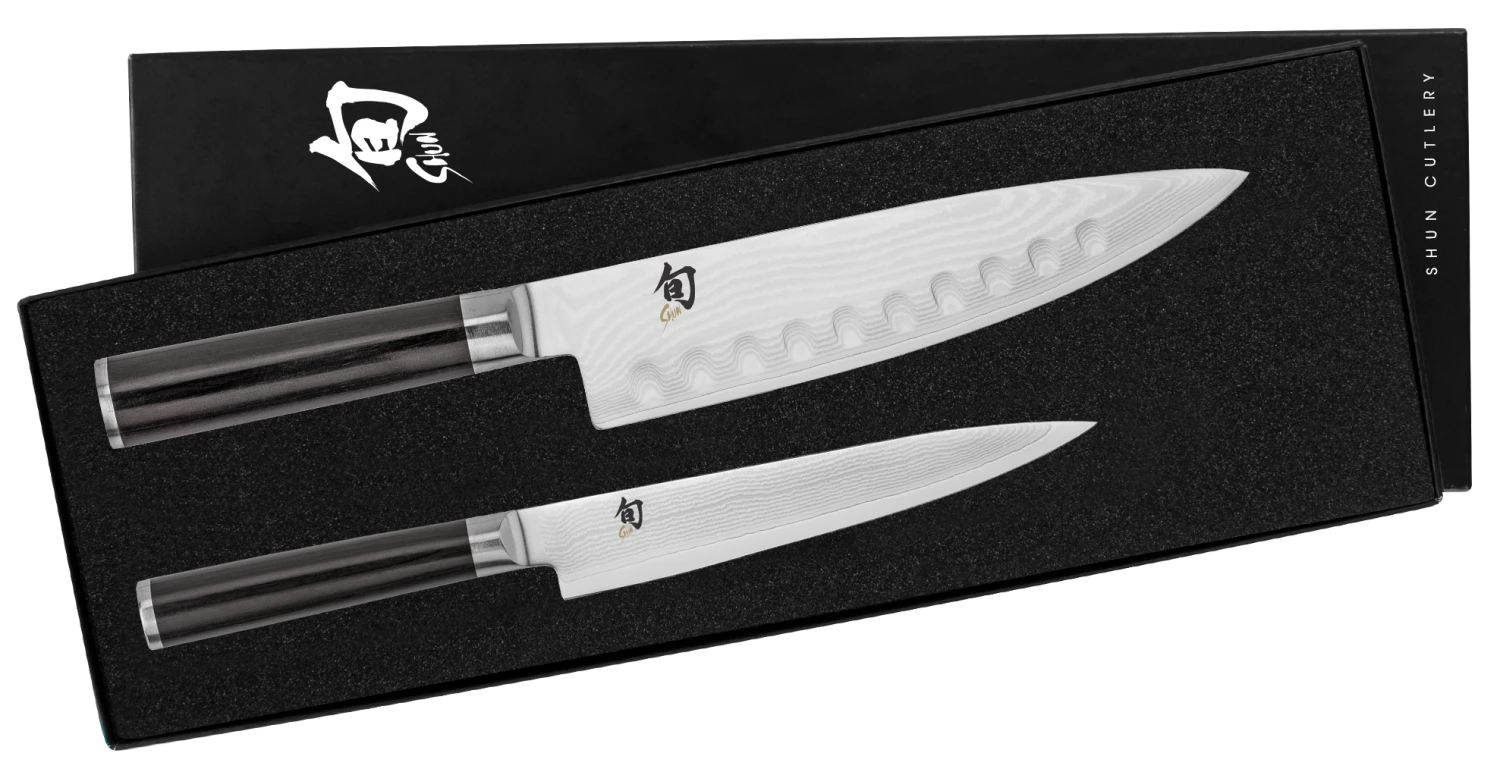 The Shun Classic 2-Piece Starter Set includes two key pieces of cutlery that no kitchen should be without. It starts with the Shun Classic 8-in. Hollow-Ground Chef’s Knife, the do-it-all knife that you’ll use every time you cook. The hollows in the blade help food release from the blade more easily. The set also includes the Shun Classic 6-in. Utility Knife, perfect for smaller and in-between-sized tasks. The set comes in a beautiful box suitable for storage or gift-giving.