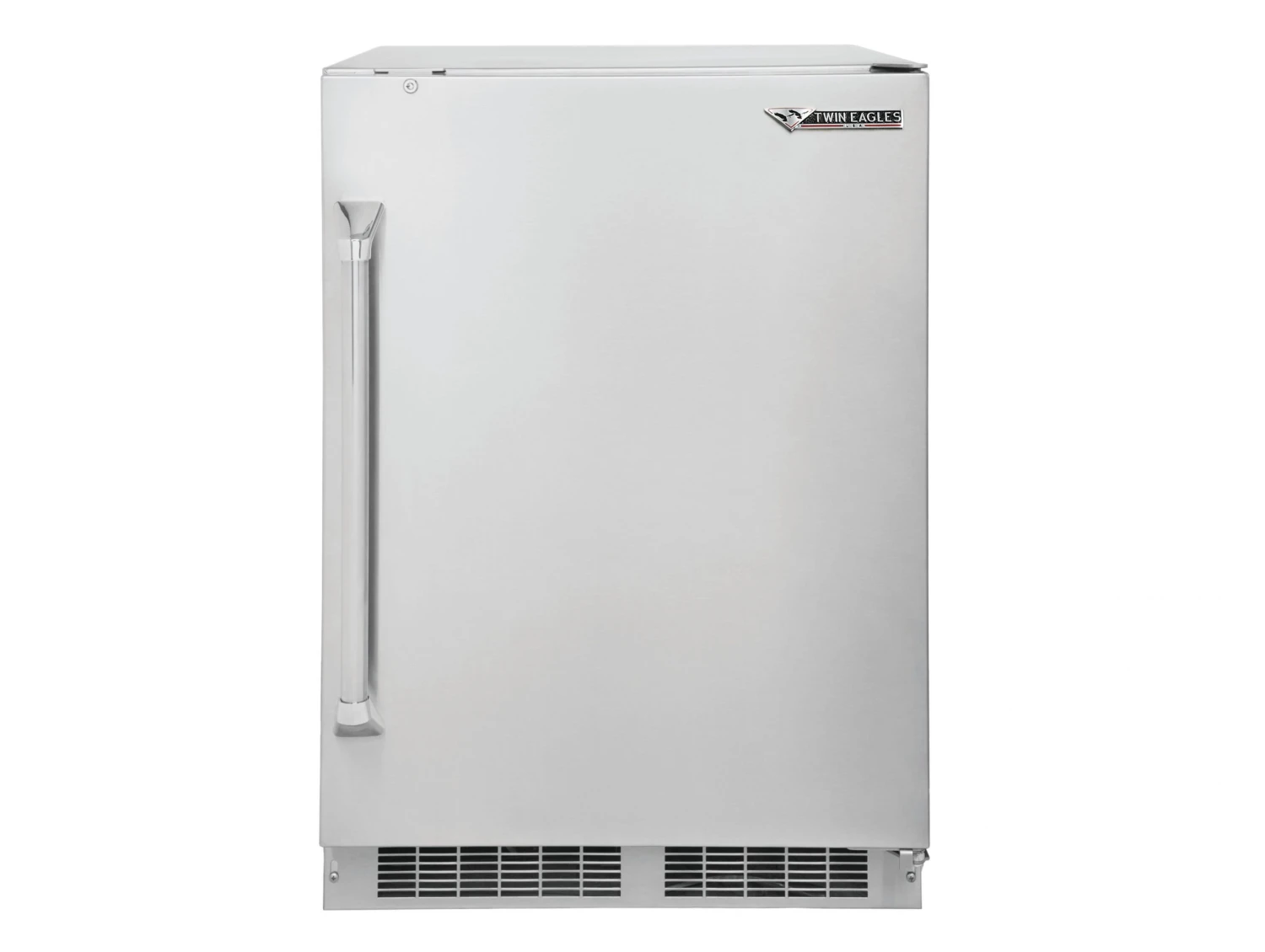 The ultimate backyard kitchen convenience, this stylish, outdoor refrigerator features 5.1 cubic feet of storage, two perforated slide-out shelves and door storage. Keeps marinated meats, side dishes and beverages barbecue-ready. A must-have.